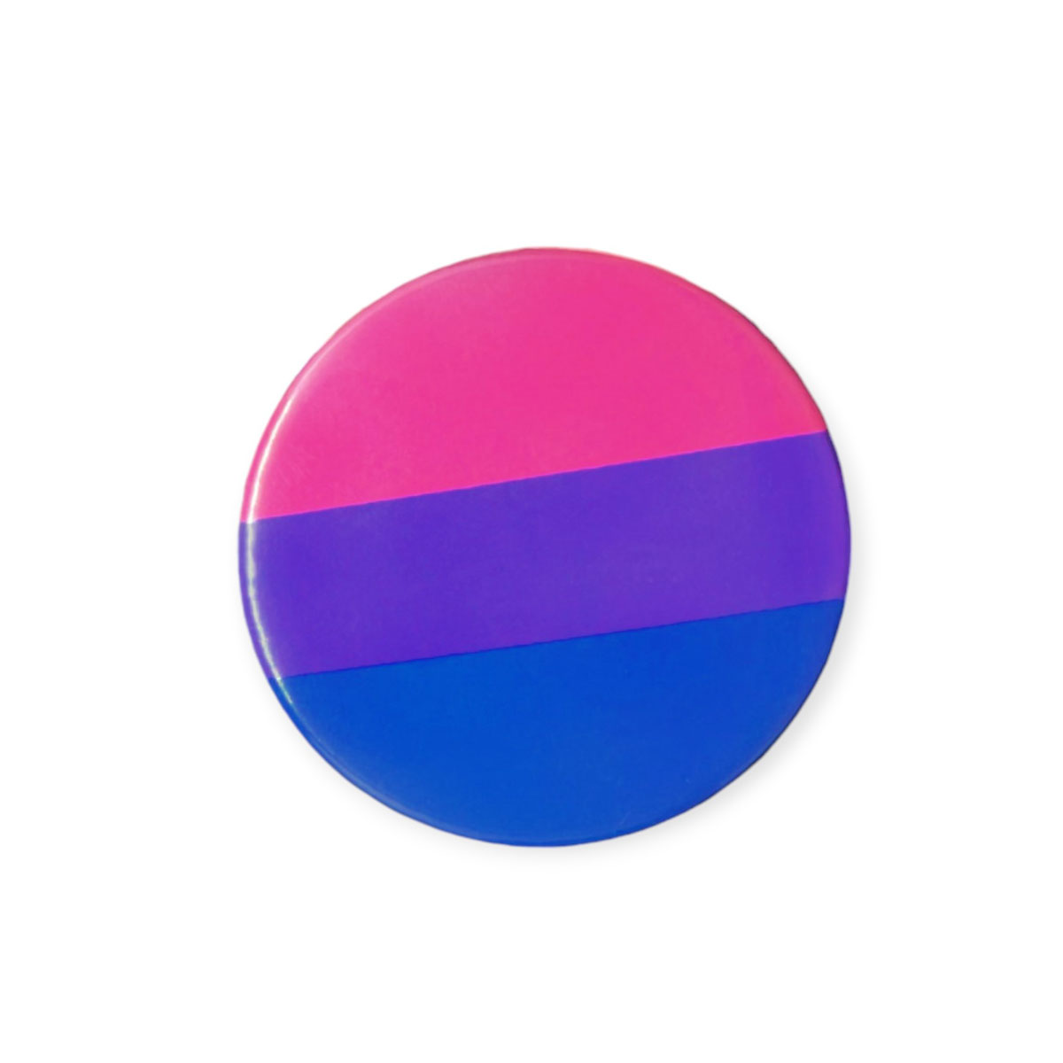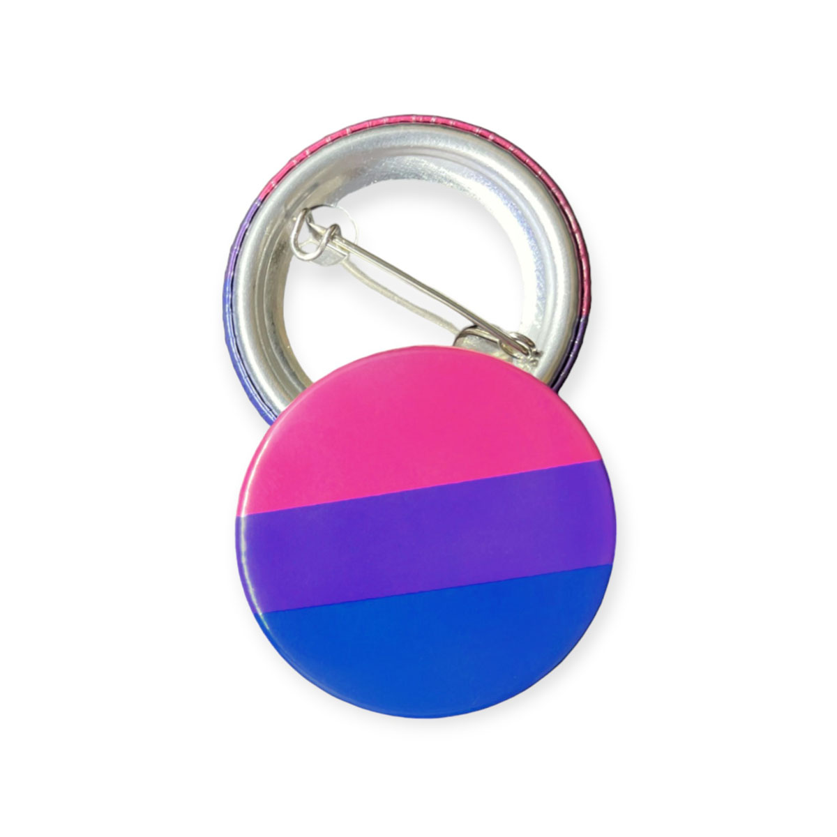 Przypinka bi w 3 pięknych i wyrazistych kolorach: różowym (zainteresowanie seksualne osobami tej samej płci), niebieskim (pociąg seksualny do osób odmiennej płci) oraz płączeniem tych dwóch kolorów, czyli fioletowym (zainteresowanie seksualne obiema płciami). Idealny dodatek do plecaka czy bluzy.
